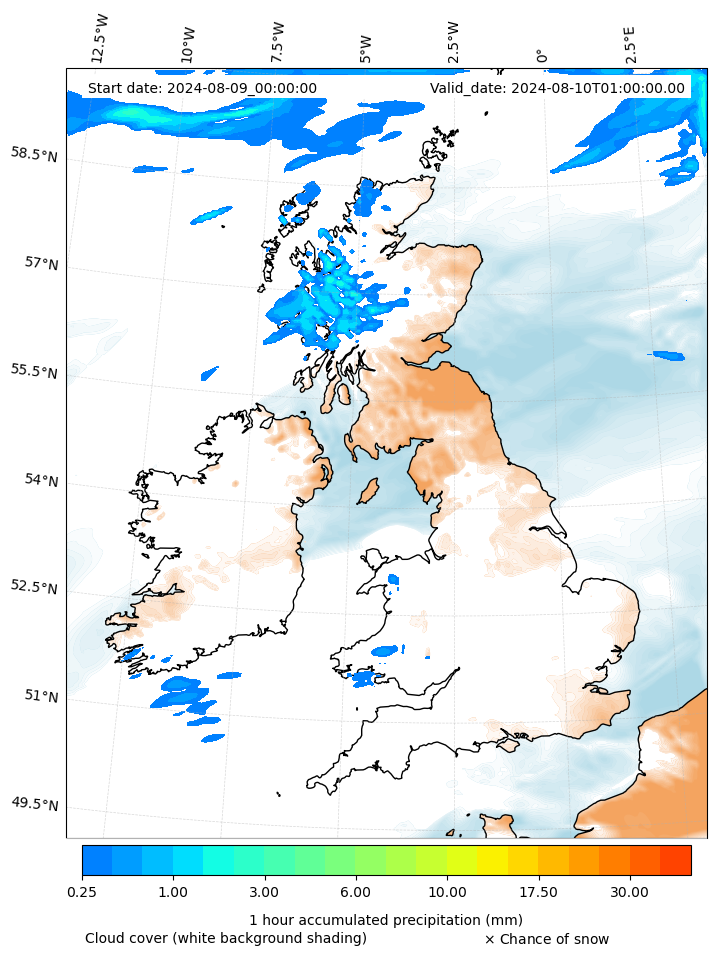 - Snow mixing ratio (g kg¯¹)