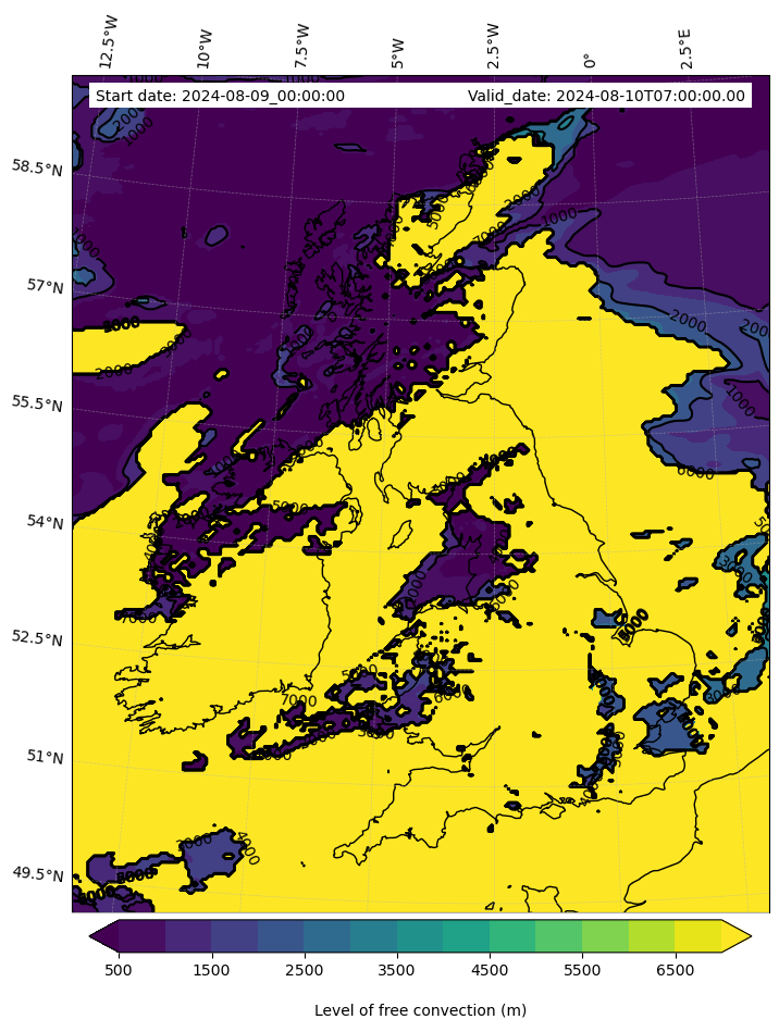 - Level of free convection (m)
