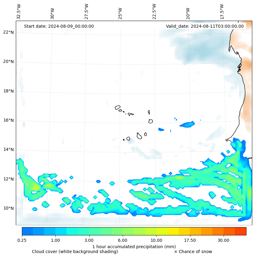 - Snow mixing ratio (g kg¯¹)