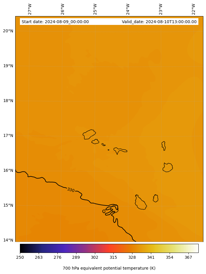 - Equivalent Potential Temperature (K)