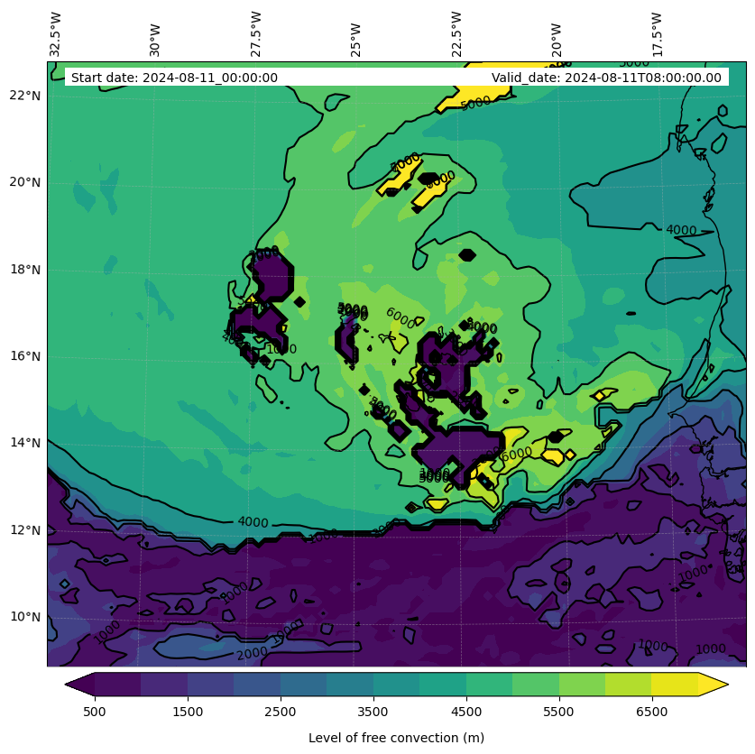 - Level of free convection (m)