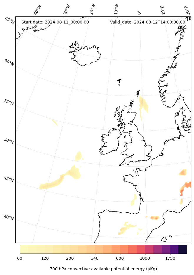 - Maximum CAPE (J/Kg)