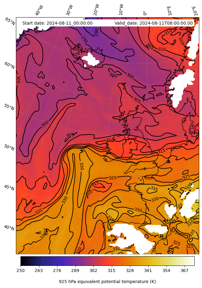 - Equivalent Potential Temperature (K)
