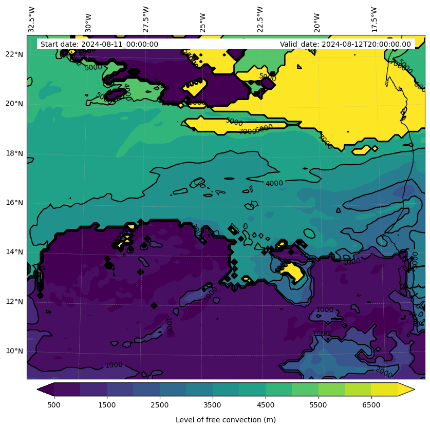 - Level of free convection (m)
