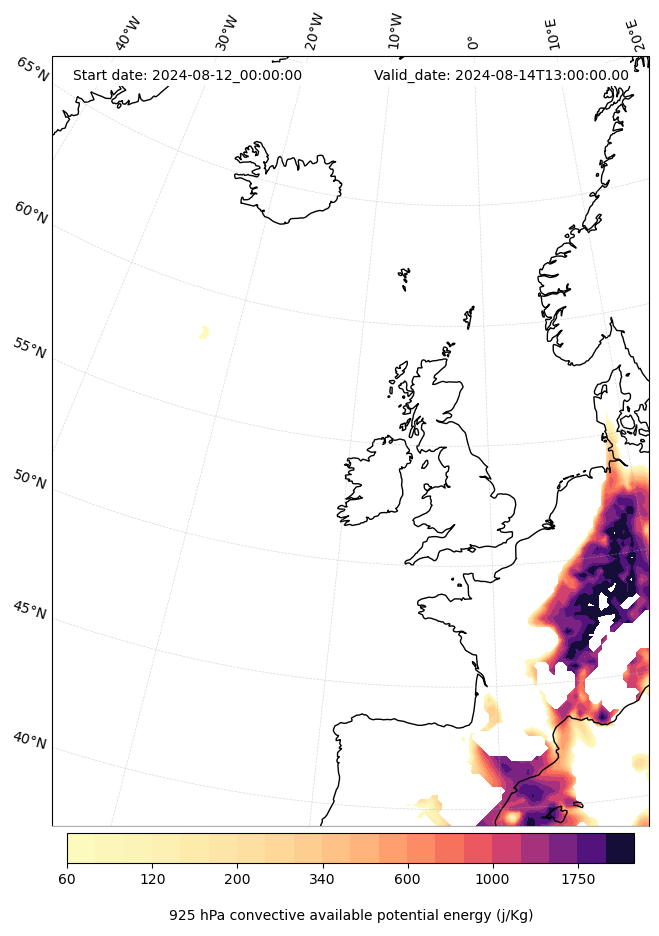 - Maximum CAPE (J/Kg)
