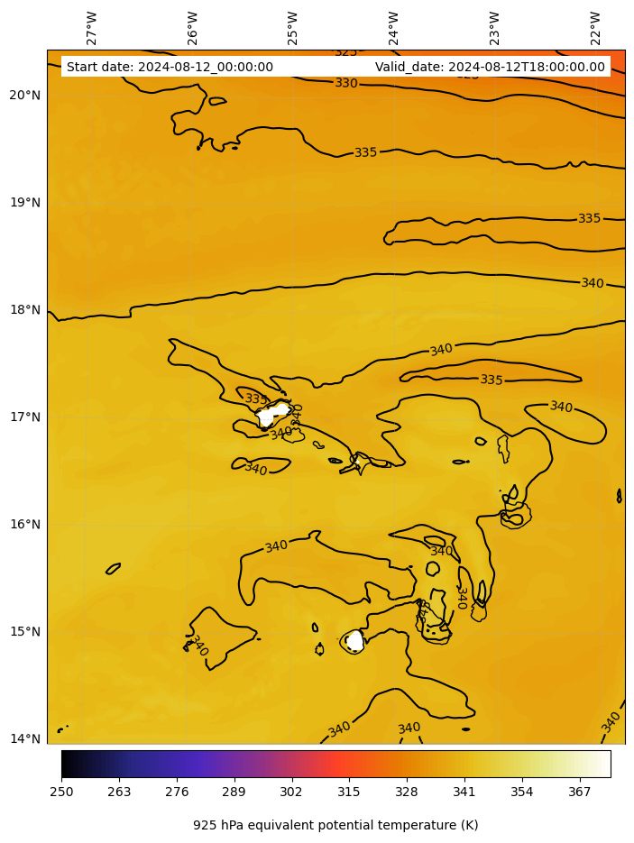 - Equivalent Potential Temperature (K)