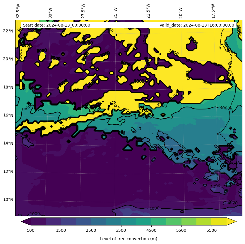 - Level of free convection (m)