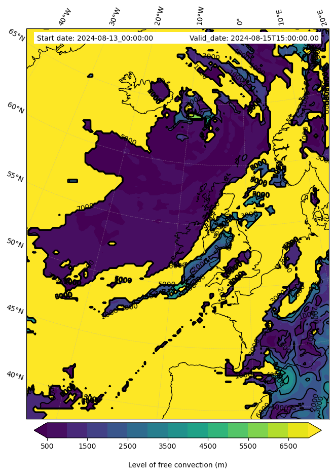 • Level of free convection (m)