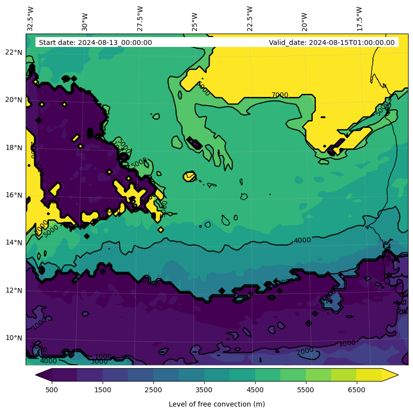 - Level of free convection (m)