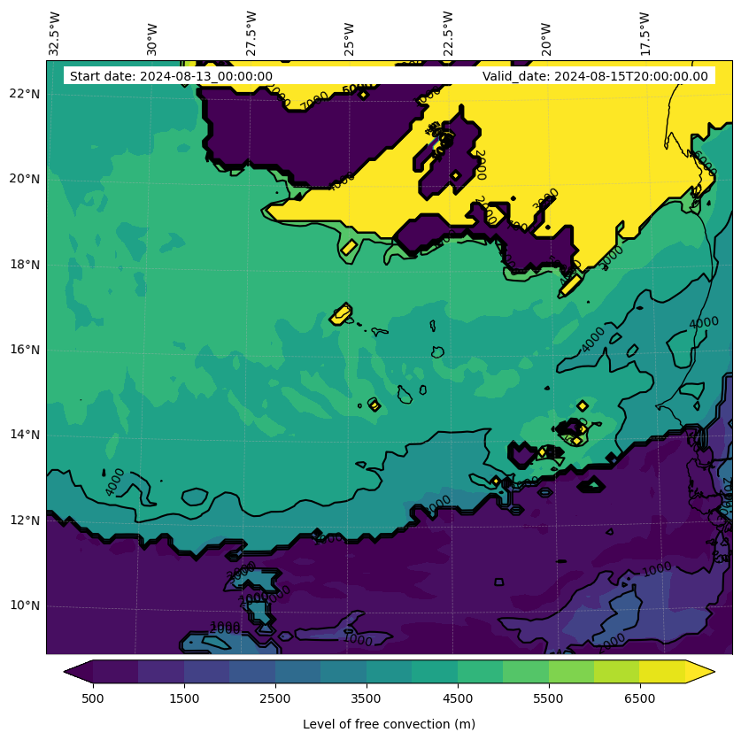 - Level of free convection (m)