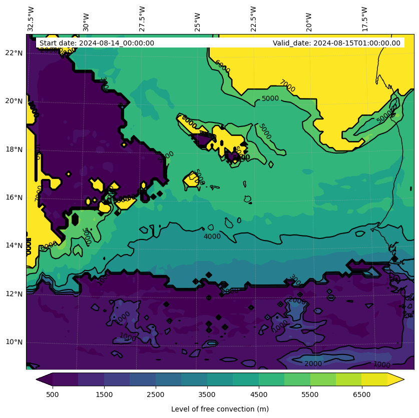 - Level of free convection (m)