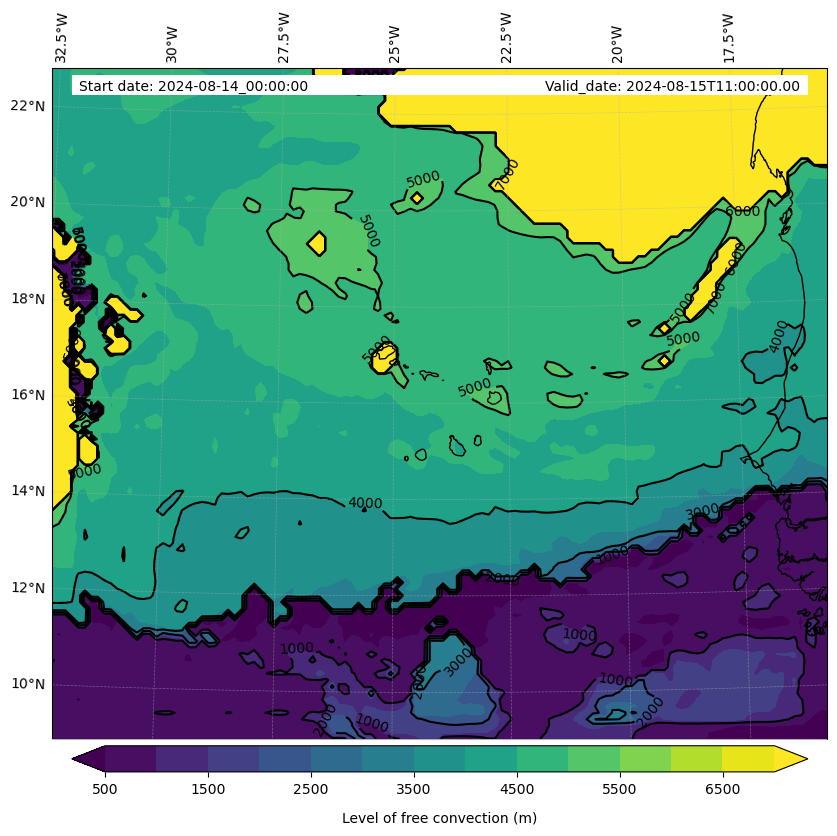 - Level of free convection (m)