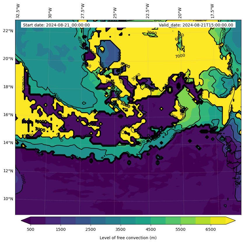 - Level of free convection (m)