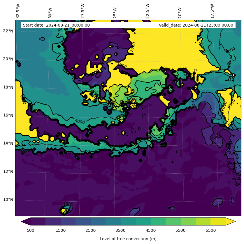 - Level of free convection (m)
