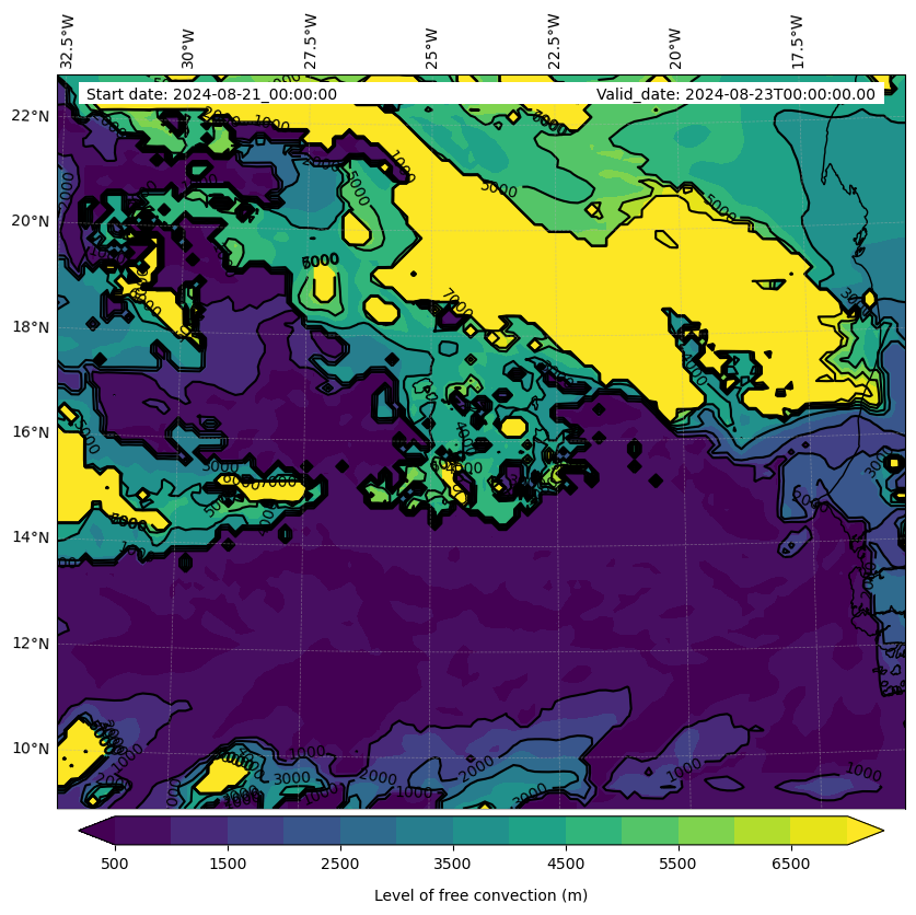 • Level of free convection (m)