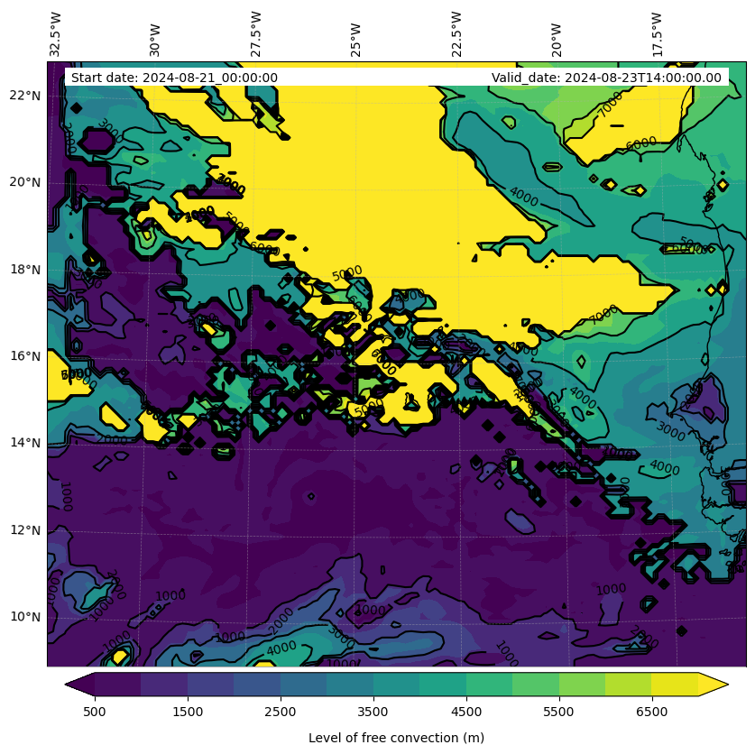 - Level of free convection (m)
