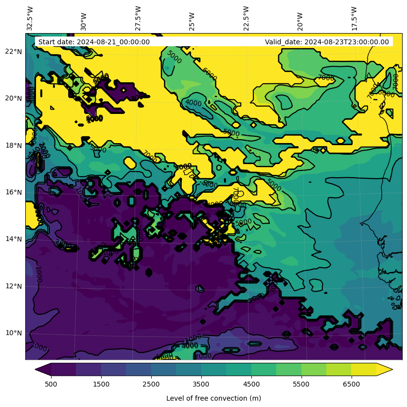 - Level of free convection (m)