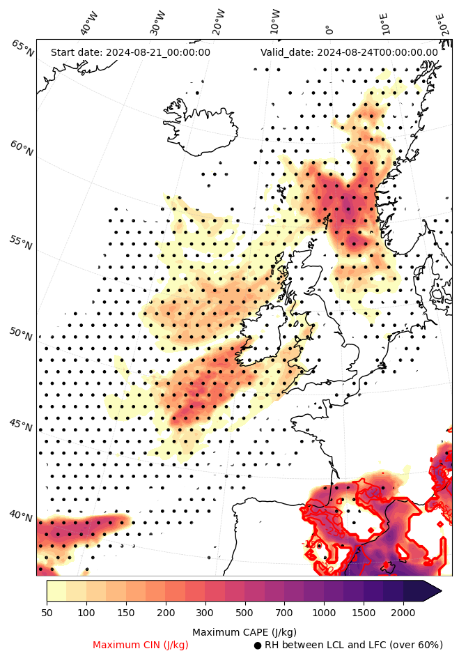 - Maximum CAPE (J/Kg)