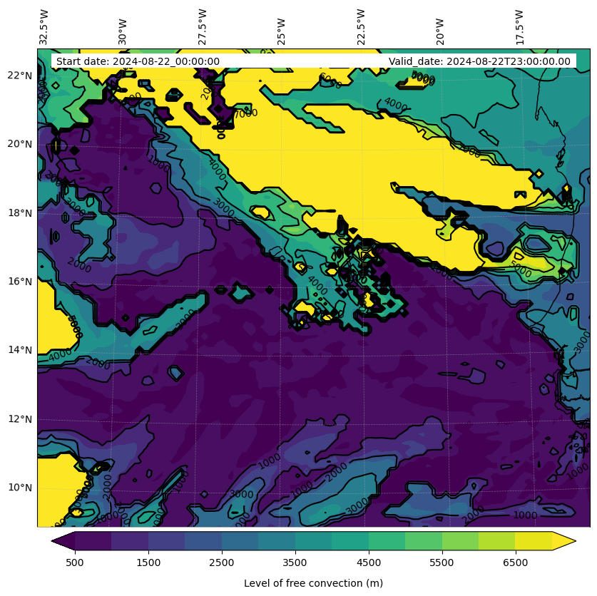 - Level of free convection (m)