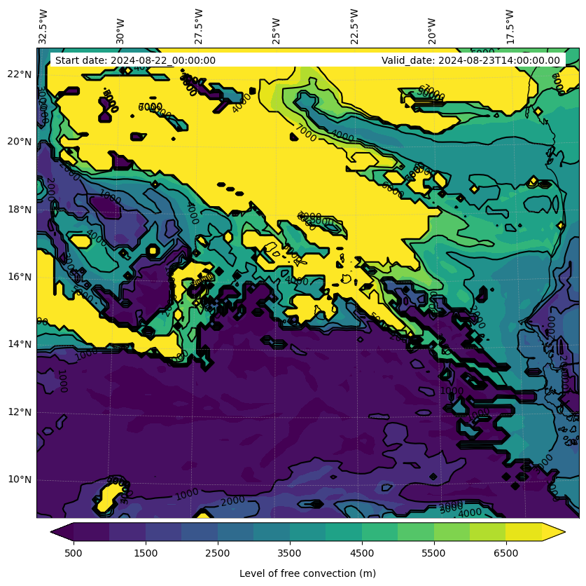 - Level of free convection (m)
