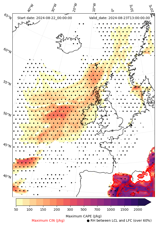 - Maximum CAPE (J/Kg)