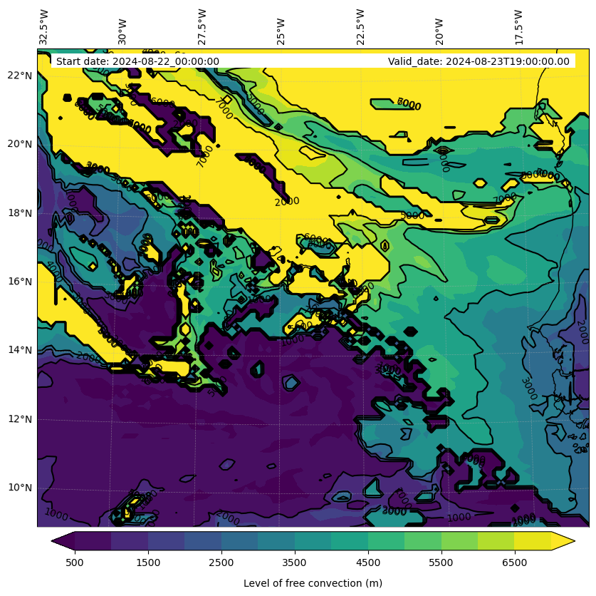 - Level of free convection (m)