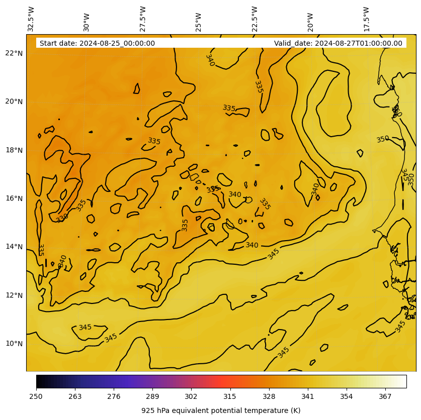 - Equivalent Potential Temperature (K)