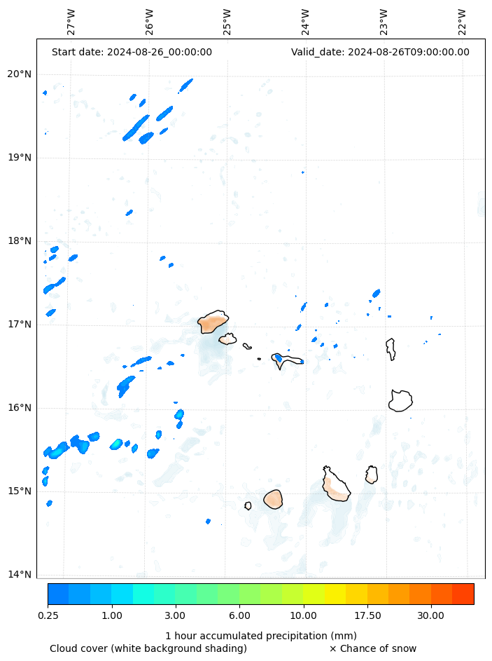 - Snow mixing ratio (g kg¯¹)