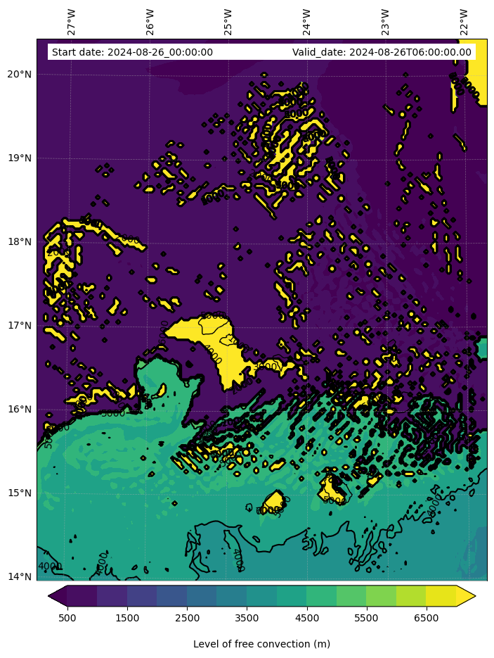- Level of free convection (m)