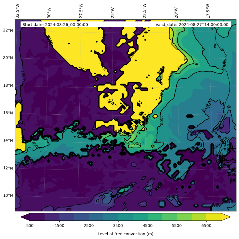 - Level of free convection (m)