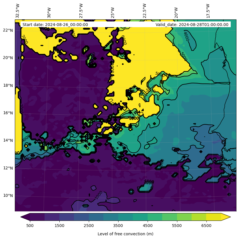 - Level of free convection (m)