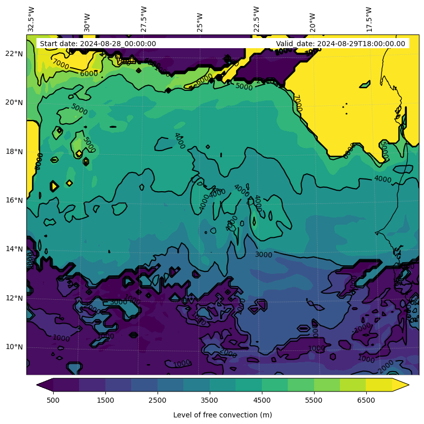 - Level of free convection (m)