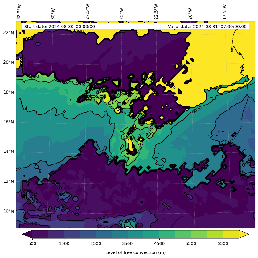 - Level of free convection (m)