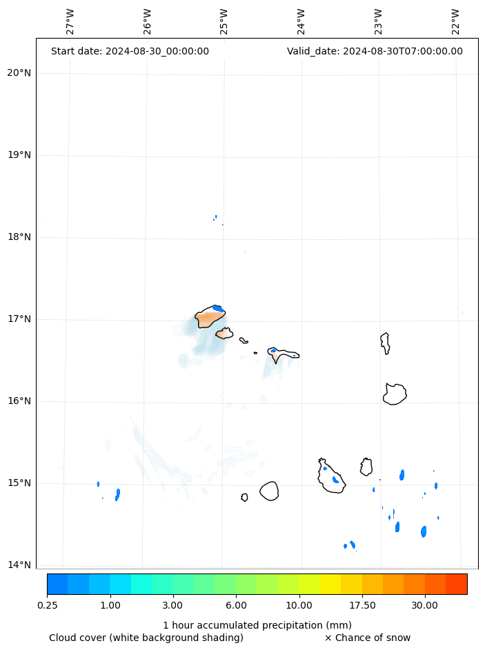 - Snow mixing ratio (g kg¯¹)