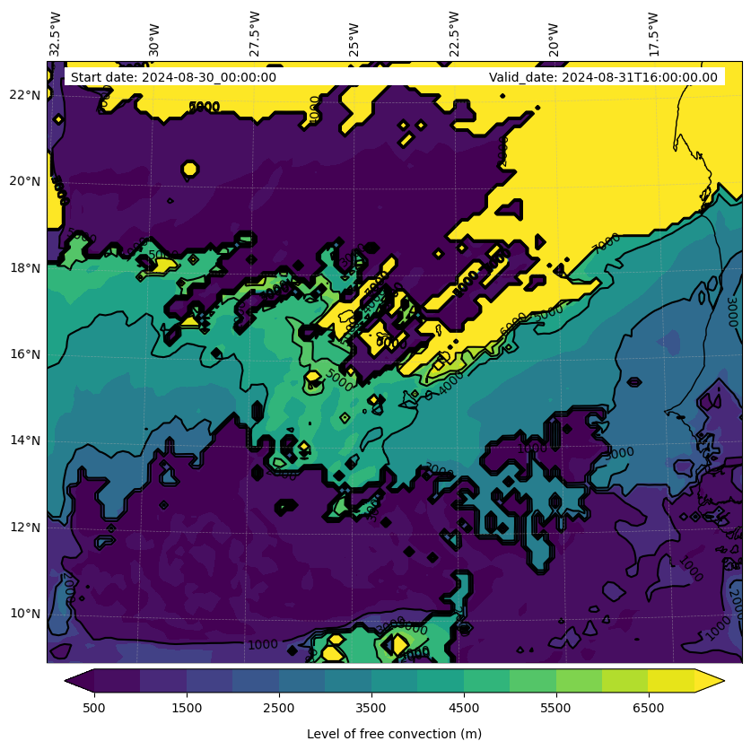 - Level of free convection (m)