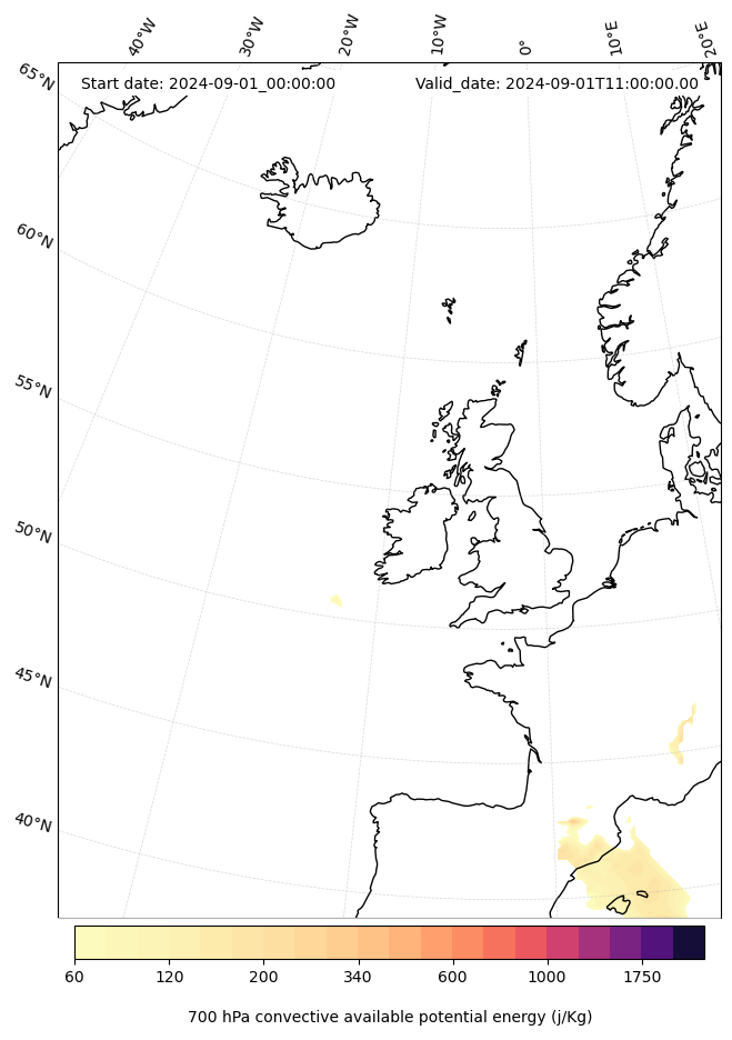 - Maximum CAPE (J/Kg)