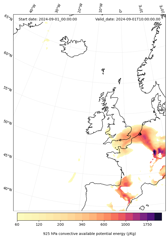 - Maximum CAPE (J/Kg)