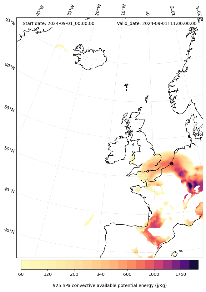 - Maximum CAPE (J/Kg)