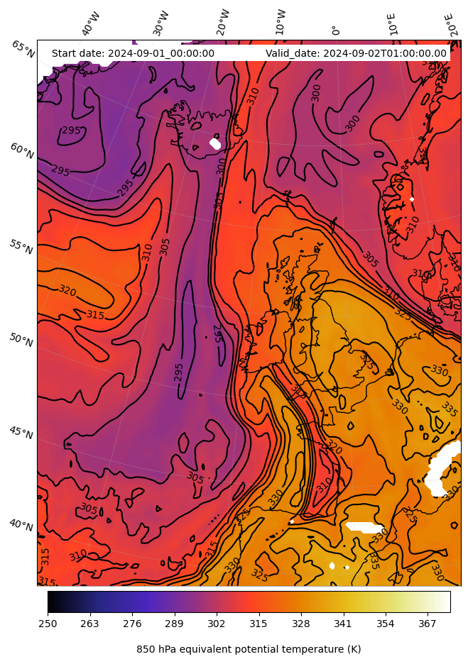 - Equivalent Potential Temperature (K)