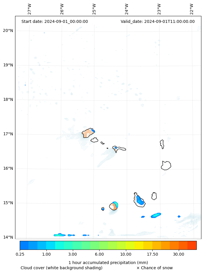 - Snow mixing ratio (g kg¯¹)