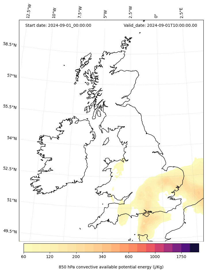 - Maximum CAPE (J/Kg)