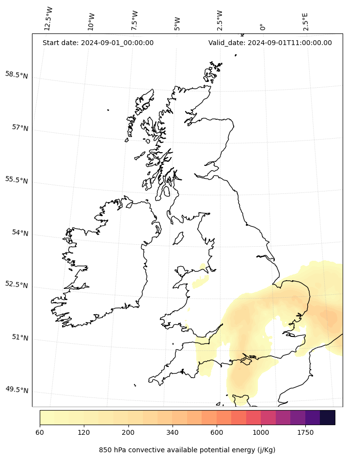 - Maximum CAPE (J/Kg)