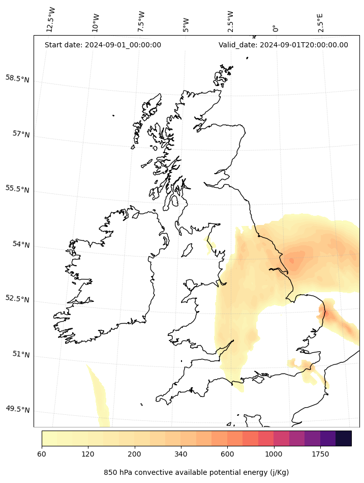 - Maximum CAPE (J/Kg)