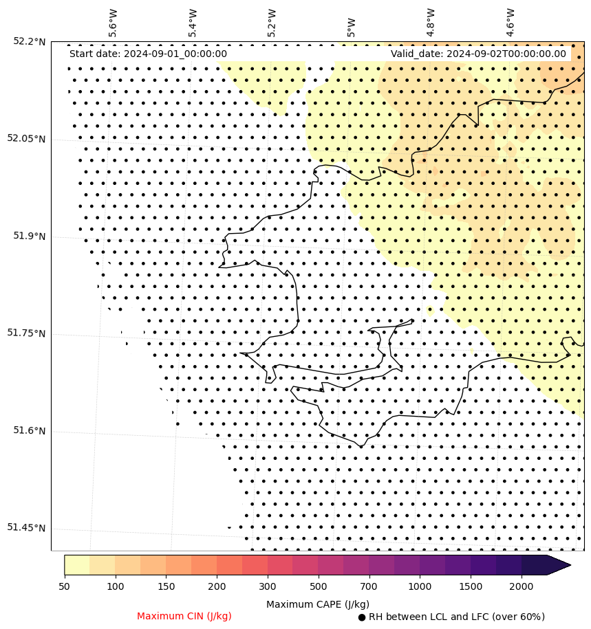 • Maximum CAPE (J/Kg)