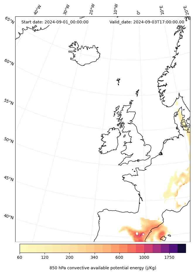 - Maximum CAPE (J/Kg)