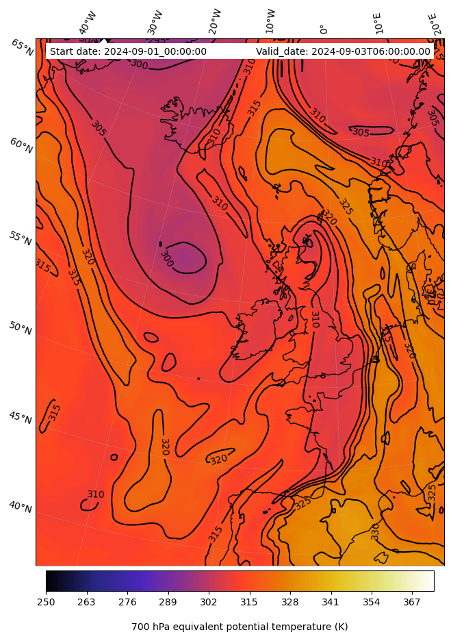 - Equivalent Potential Temperature (K)