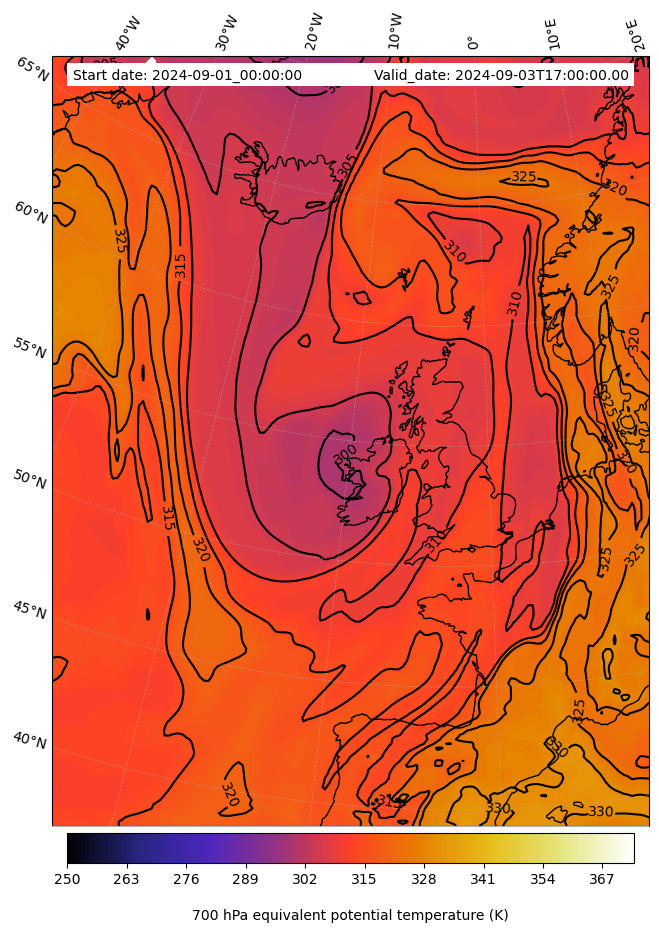 - Equivalent Potential Temperature (K)