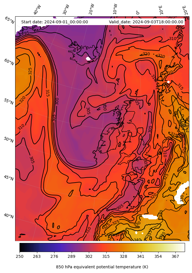- Equivalent Potential Temperature (K)