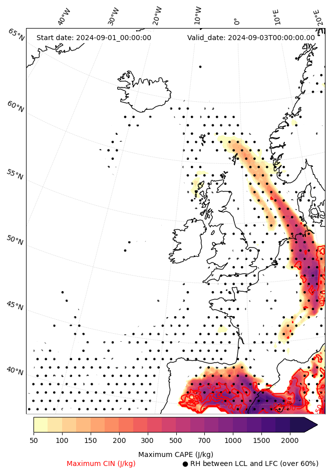 • Maximum CAPE (J/Kg)