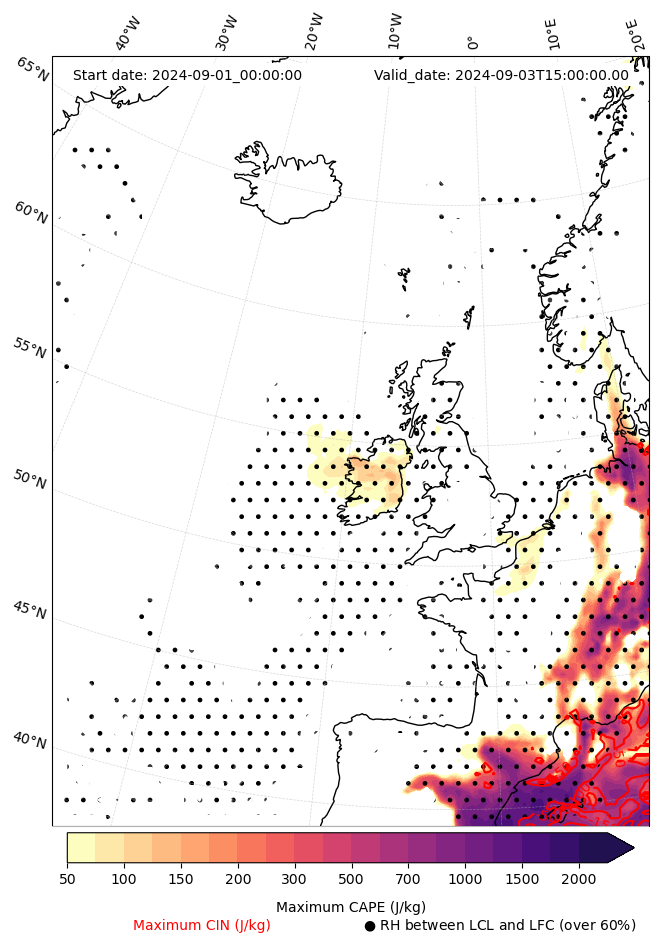 • Maximum CAPE (J/Kg)